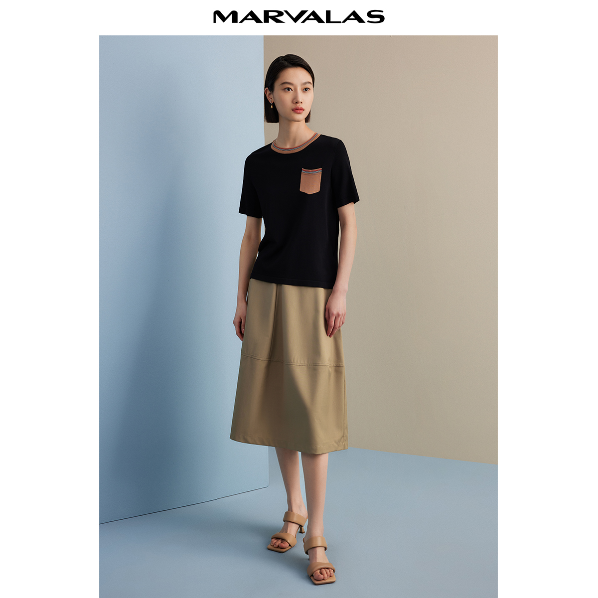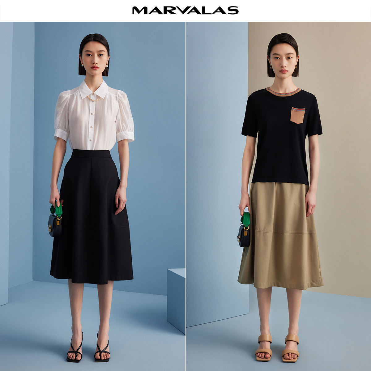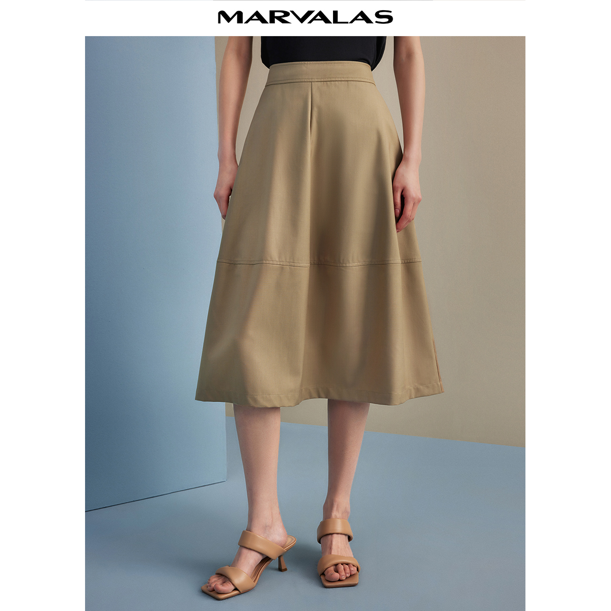 通勤百搭A字中长裙伞裙 时尚 曼德诗纯色高腰半身裙女2025秋季 新款