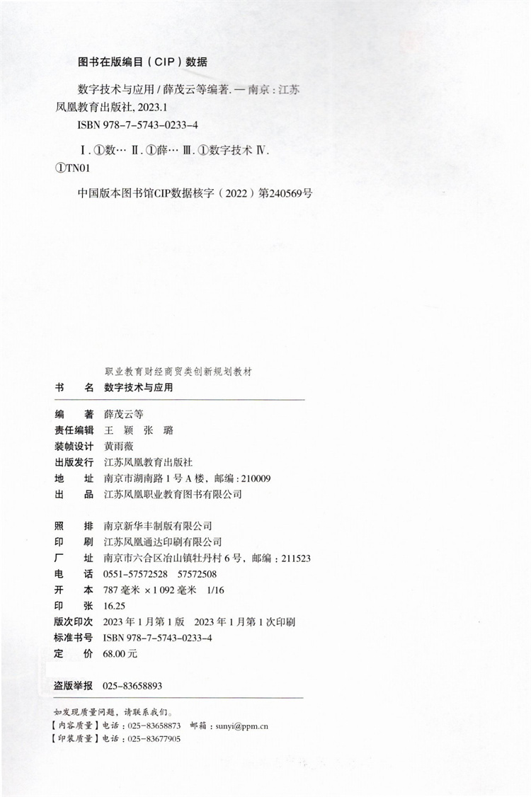 数字技术认知 应用工具 行业应用 职教 社 职业教育财经商贸类创新规划教材 江苏凤凰教育出版 数字技术与应用