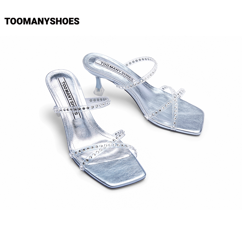 女拖鞋 昨夜派对透明闪钻方头细高跟凉鞋 夏新款 Toomanyshoes女鞋