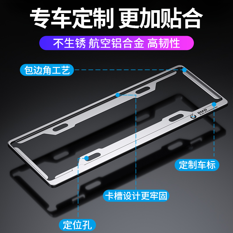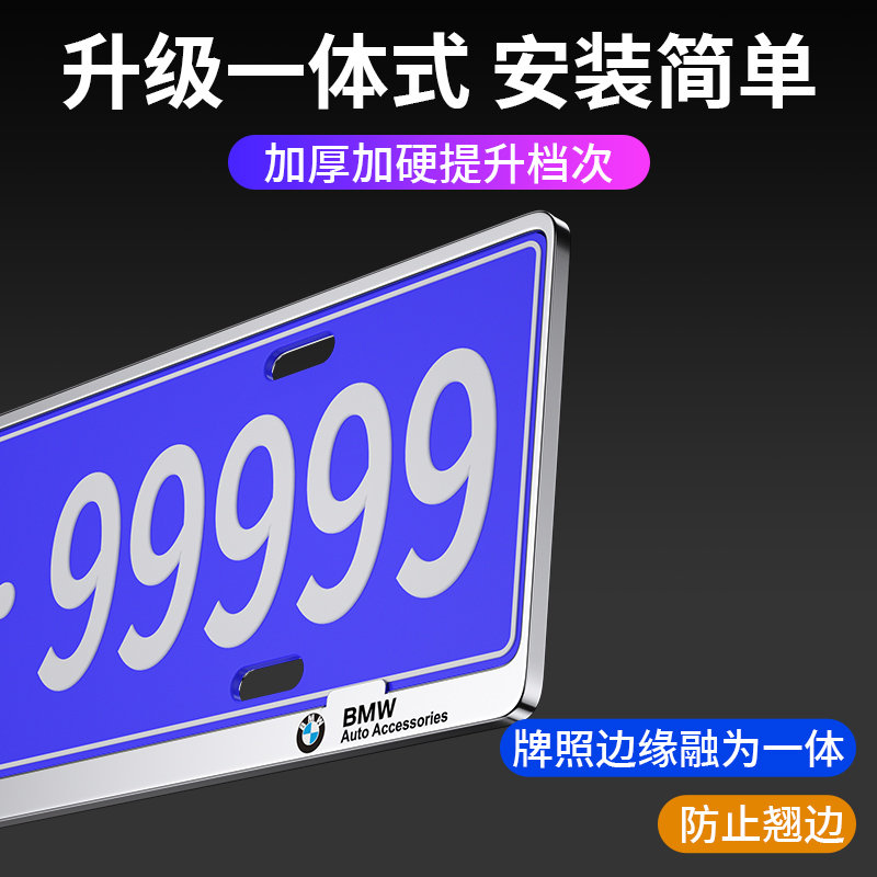 汽车牌架边框牌照框不锈钢通用托盘特斯拉宝马奥迪加厚蓝牌车牌套