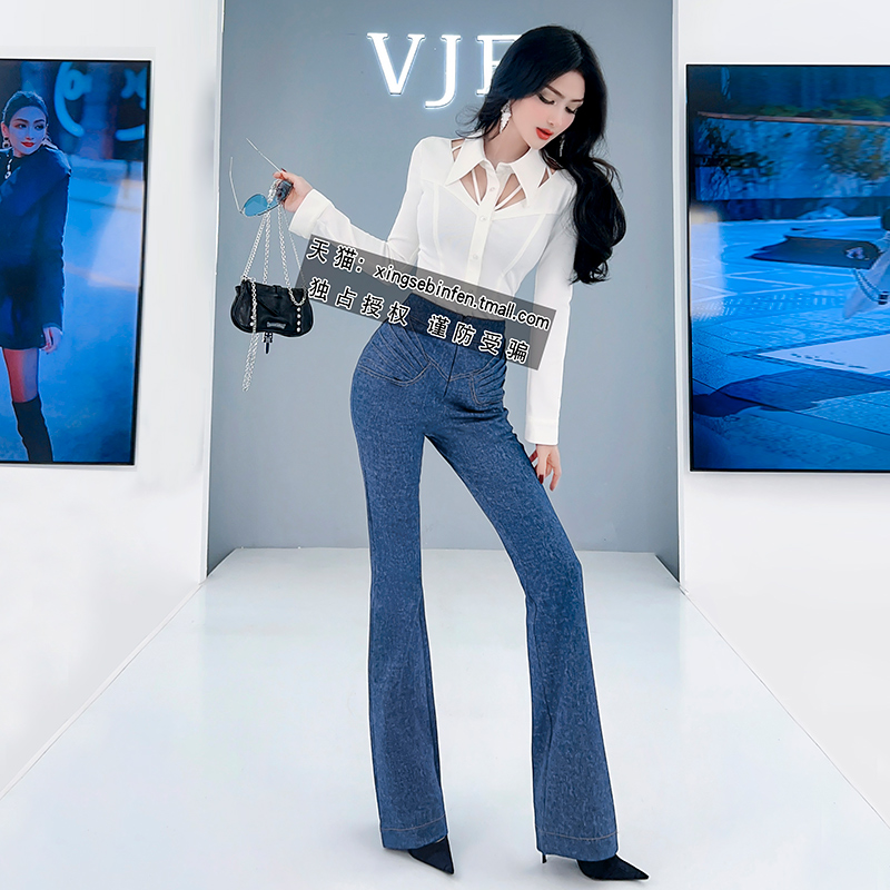 时尚 休闲显瘦高腰喇叭裤 百搭修身 新款 显高牛仔裤 型色缤纷春季