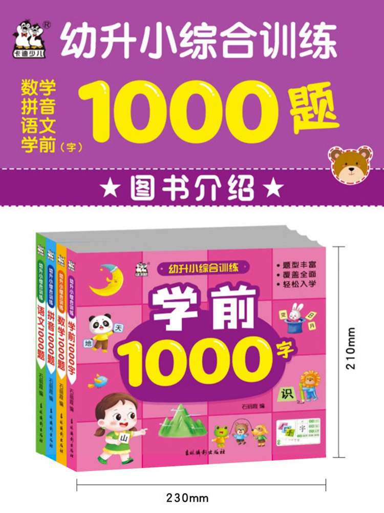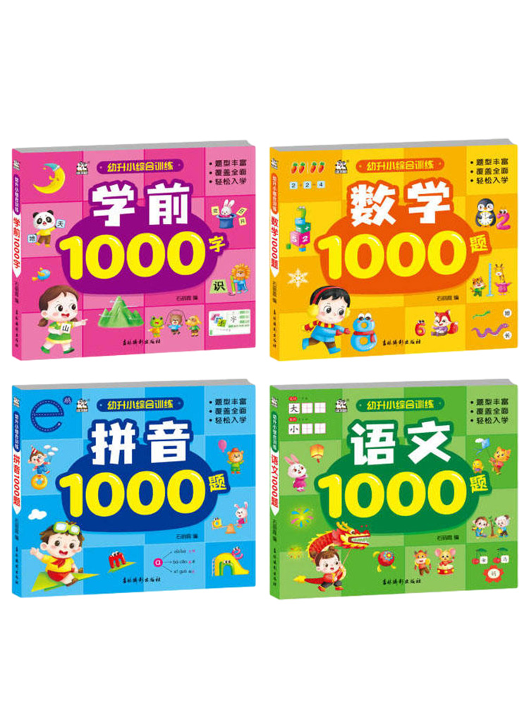 学前识字1000字幼升小衔接练习册全套4册 启蒙早教书幼儿园宝宝认字学说话学前识字认字书一年级数学语文拼音练习1000题入学准备