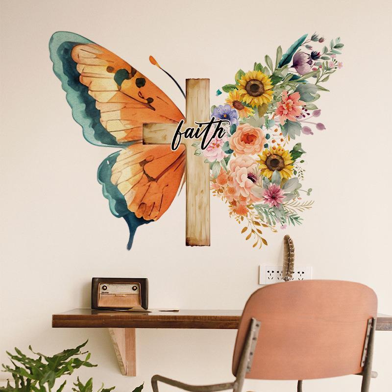 旅康CH36037十字架蝴蝶花卧室床头柜装 饰餐厅墙面家居美化墙贴定