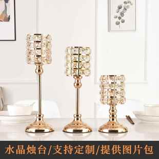欧式 金色水晶烛台跨境家居饰品摆件铁艺烛台婚庆婚礼烛光晚餐道具
