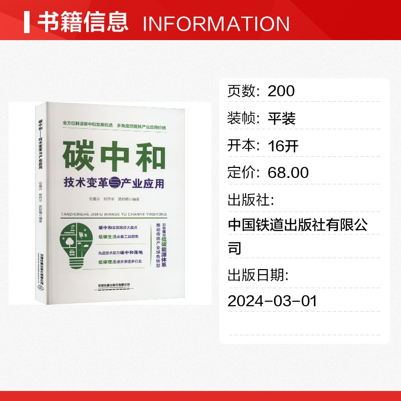 图书籍 社有限公司 郑开宇 经济理论经管 励志 编 伦嘉云 黄郁娟 中国铁道出版 碳中和 新华书店正版 技术变革与产业应用