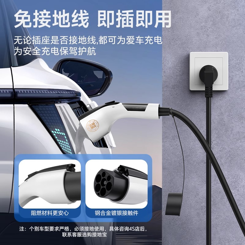7kw新能源充电枪便携式 随车充家用16A电动汽车充电器免接地充电桩
