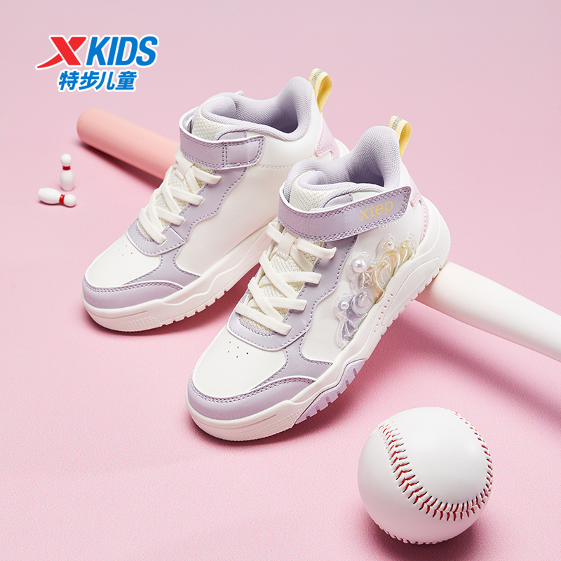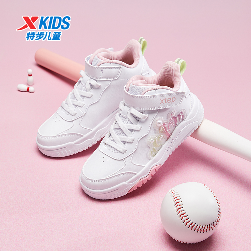 女童魔术贴百搭耐磨板鞋 幼小童舒适软底儿童休闲鞋 春秋款 特步童鞋