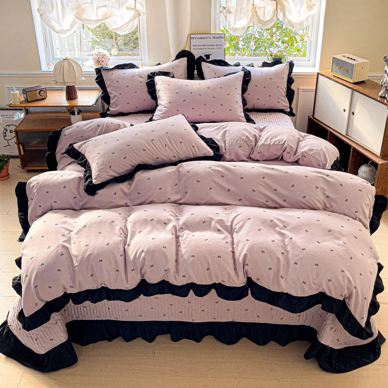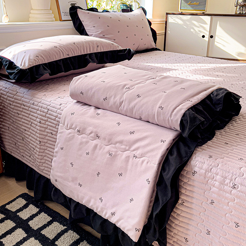 轻奢法式 花边针织双层纱赫本风床盖夏被家用床上用品四件套三件套