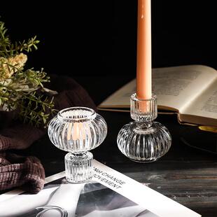 饰摆件道具 轻奢浪漫餐桌装 ins韩国同款 透明水晶玻璃灯笼烛台法式