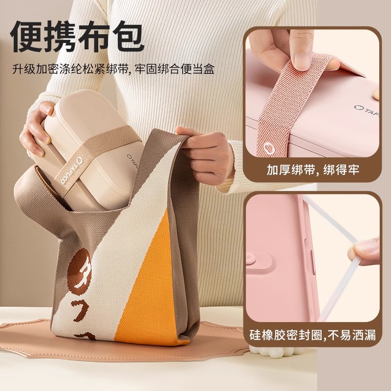 泰福高便当餐盒上班族不锈钢双层分隔保鲜饭盒微波炉加热 自营