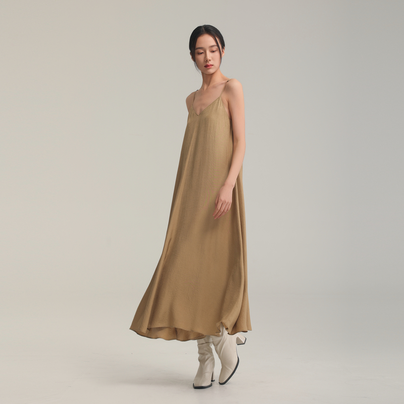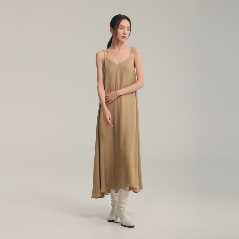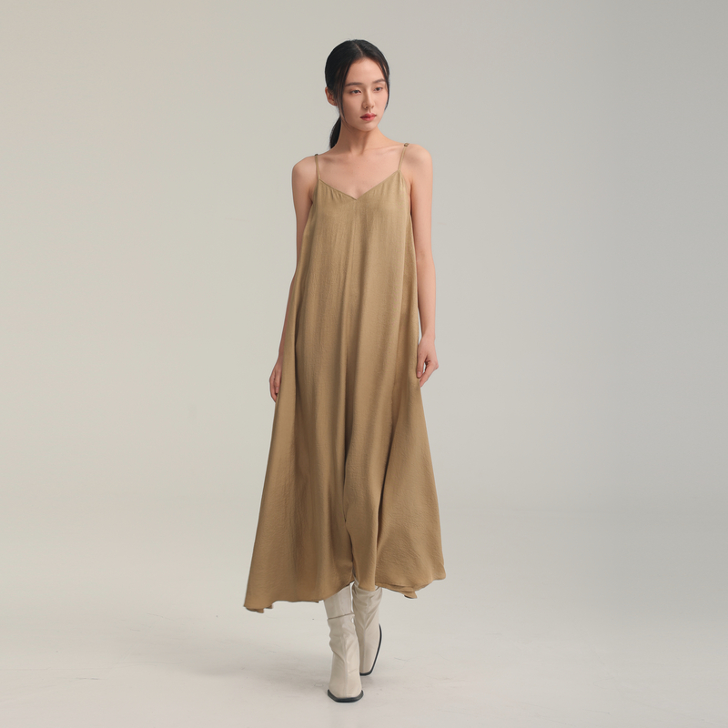 黑标BAIZHUO夏季 轻熟气质松弛感V领收腰吊带连衣裙AZ42LQ735 新款