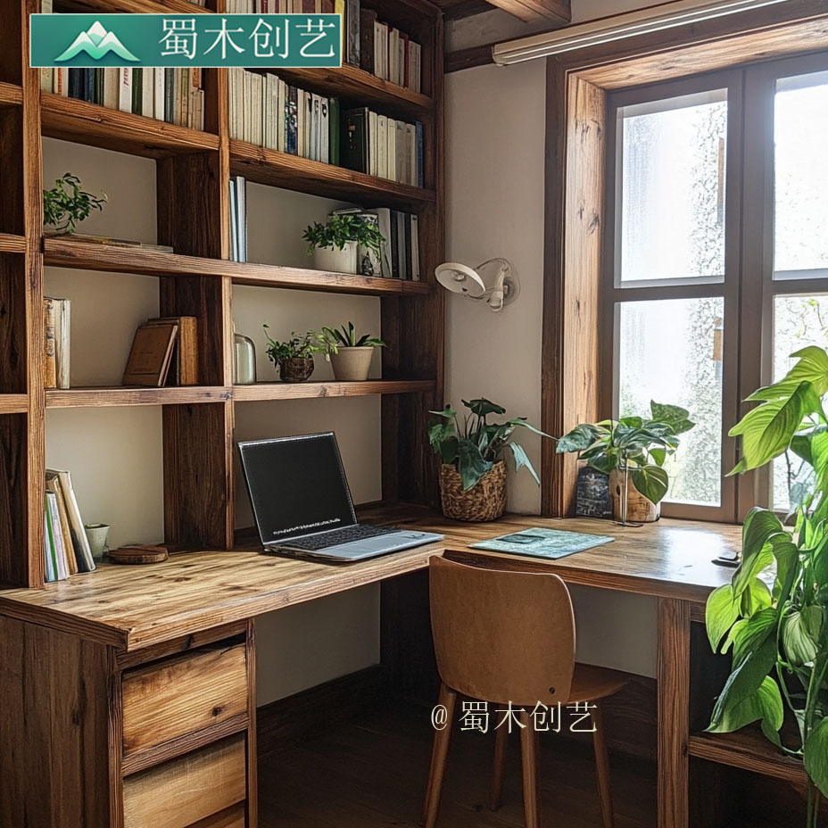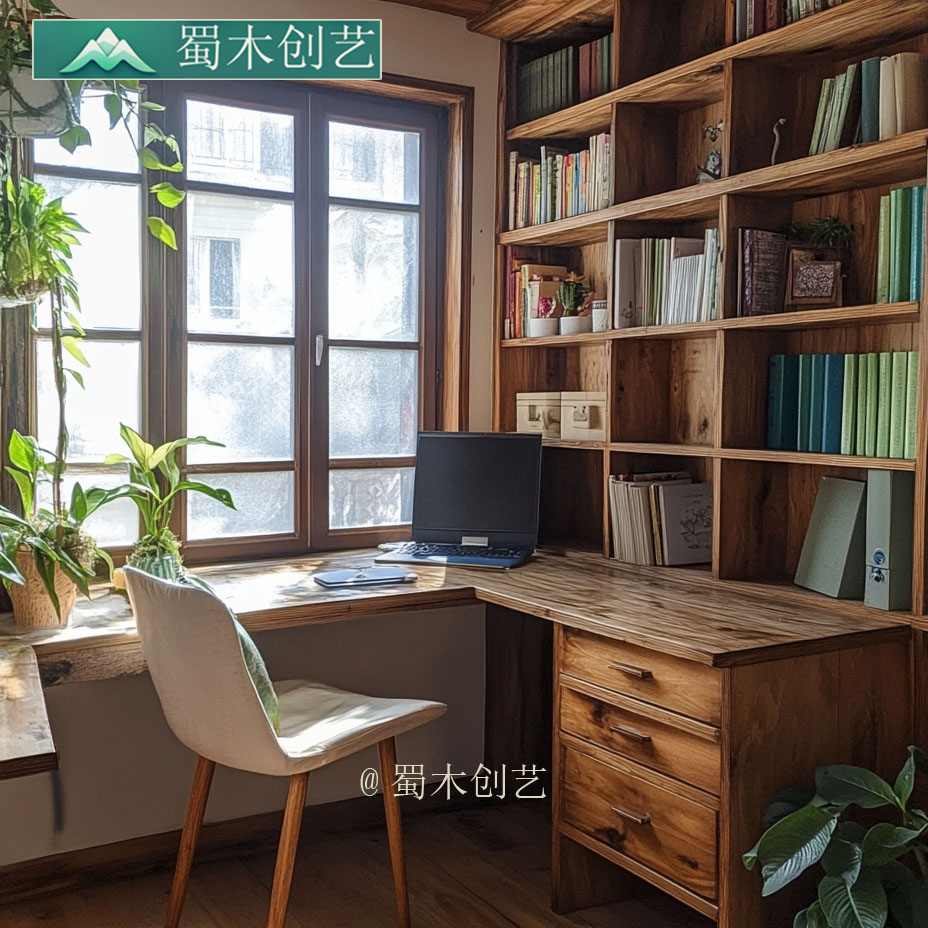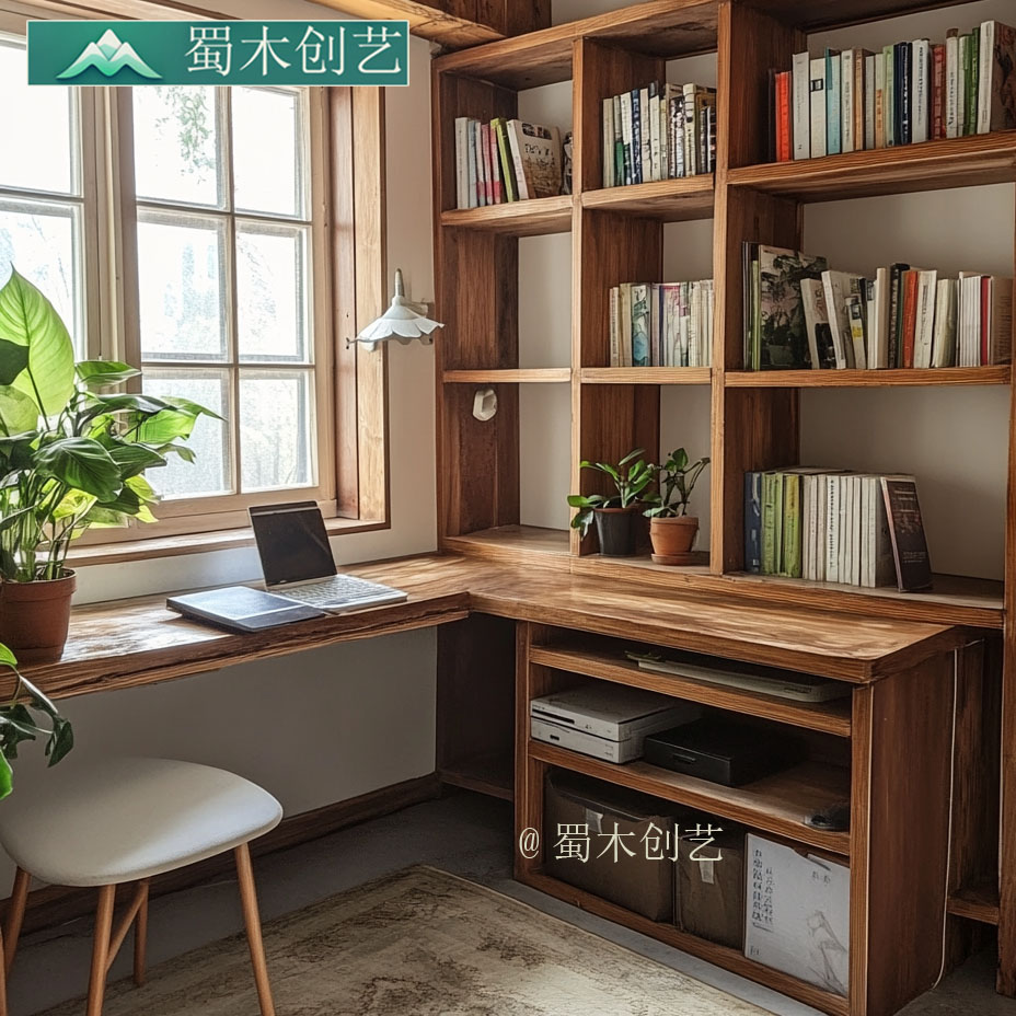 转角书桌书架书柜一体桌子学生家用写字学习桌卧室实木电脑办公桌