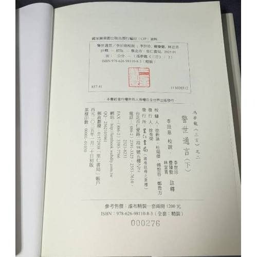 李田意 里仁书局 三言之二 林宜青 费臻懿 李世珍 港台原版 上下册 警世通言 冯梦龙 现货