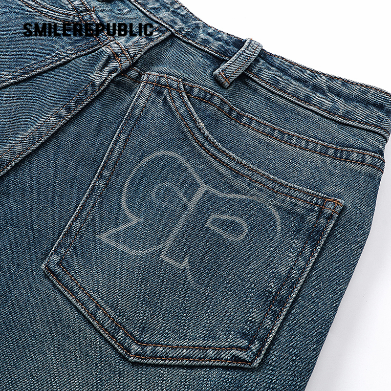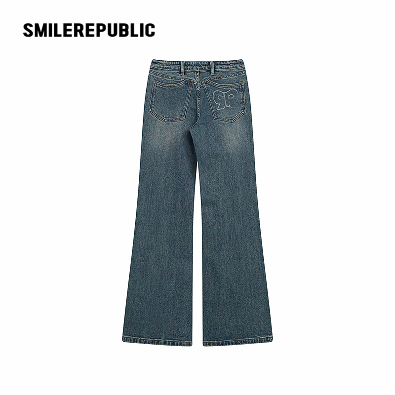百搭女装 smilerepublic宽松做旧高腰直筒阔腿牛仔裤 女2025年新款