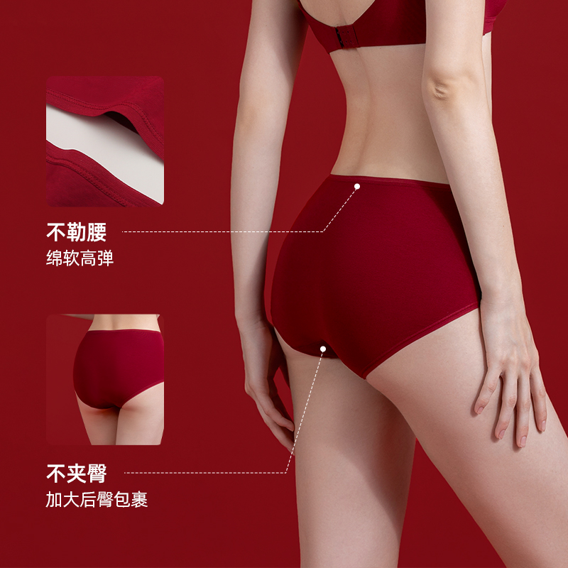 claesens本命年内裤 女中低高腰100%纯棉裆抗菌结婚红色马年三角裤