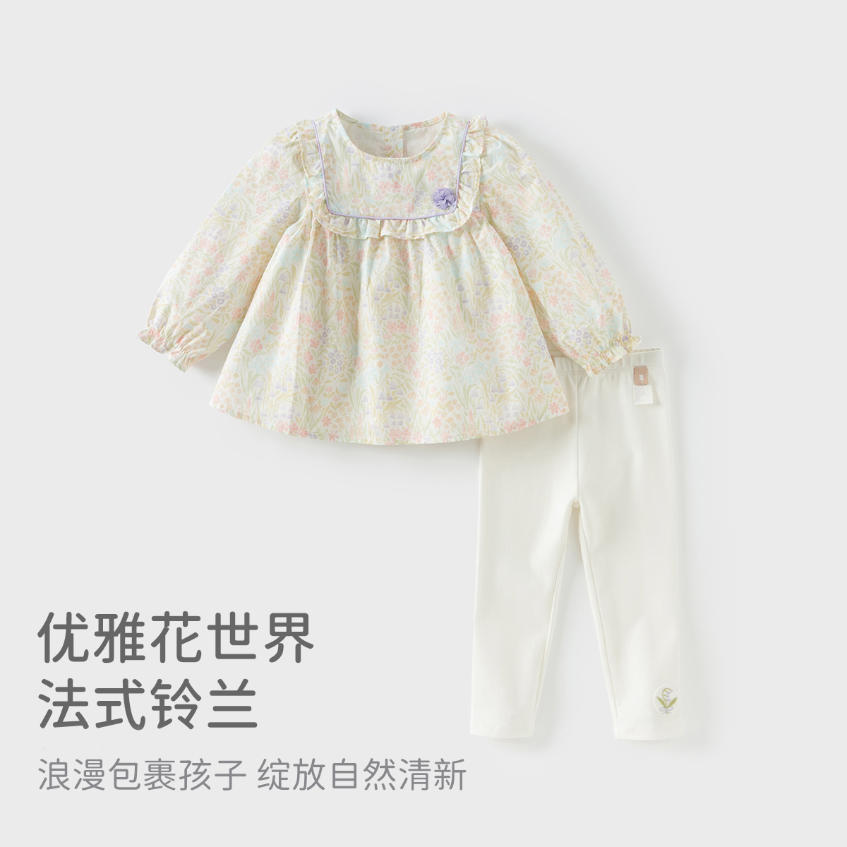 春装 戴维贝拉儿童长裤 子两件套女宝宝新款 2025女童碎花上衣裤 套装
