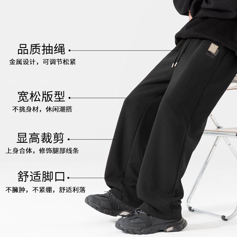男士 休闲直筒裤 春秋季 阔腿裤 回力裤 宽松垂感运动裤 子男2025新款