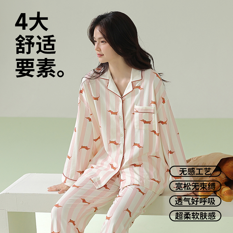 长裤 长袖 2025秋季 新款 猫人纯棉女款 甜美宽松家居服套装 睡衣春秋季