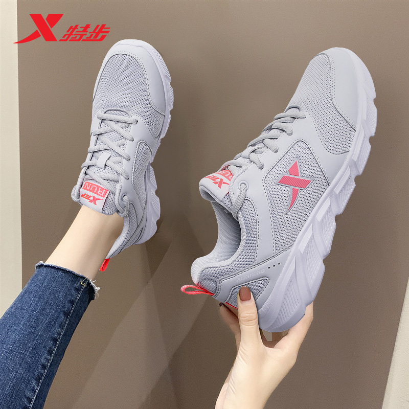 网面透气休闲鞋 秋季 官方旗舰店正品 黑色运动鞋 特步女鞋 女款 跑步鞋