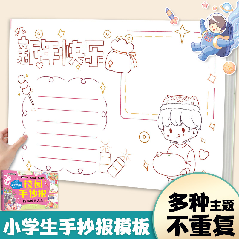 小学生校园板报读书小报线稿专用纸镂空工具套装 纪念节日篇 校园手抄报 尺子绘画画图节日学科手抄报模板 墨点