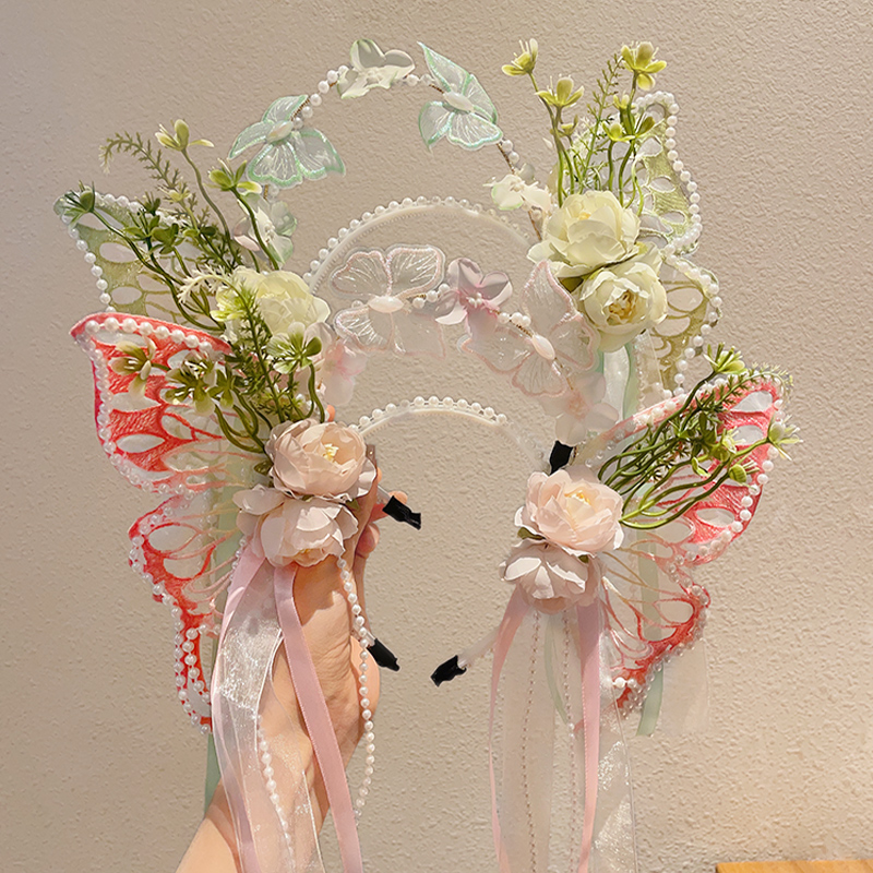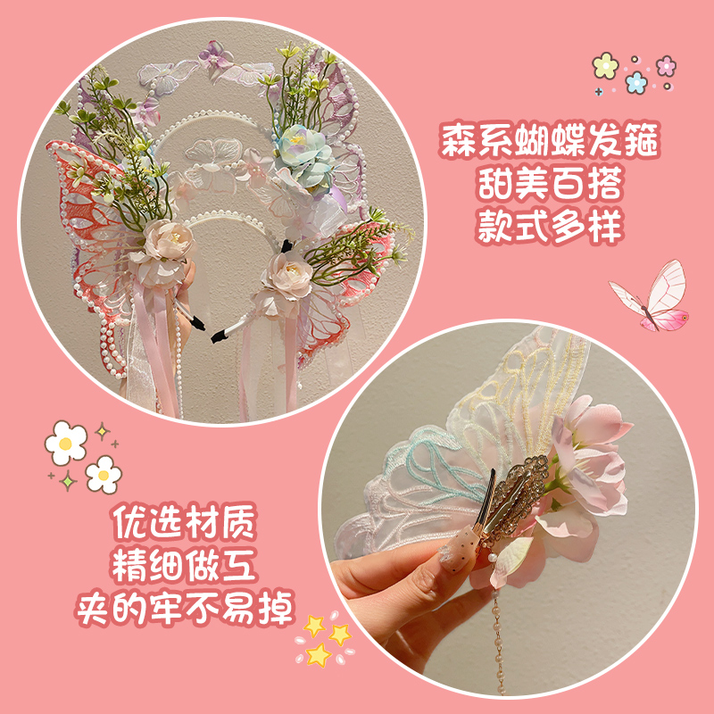 儿童蝴蝶花朵发箍2025新款 森系公主古风步摇流苏超仙发夹女童发饰