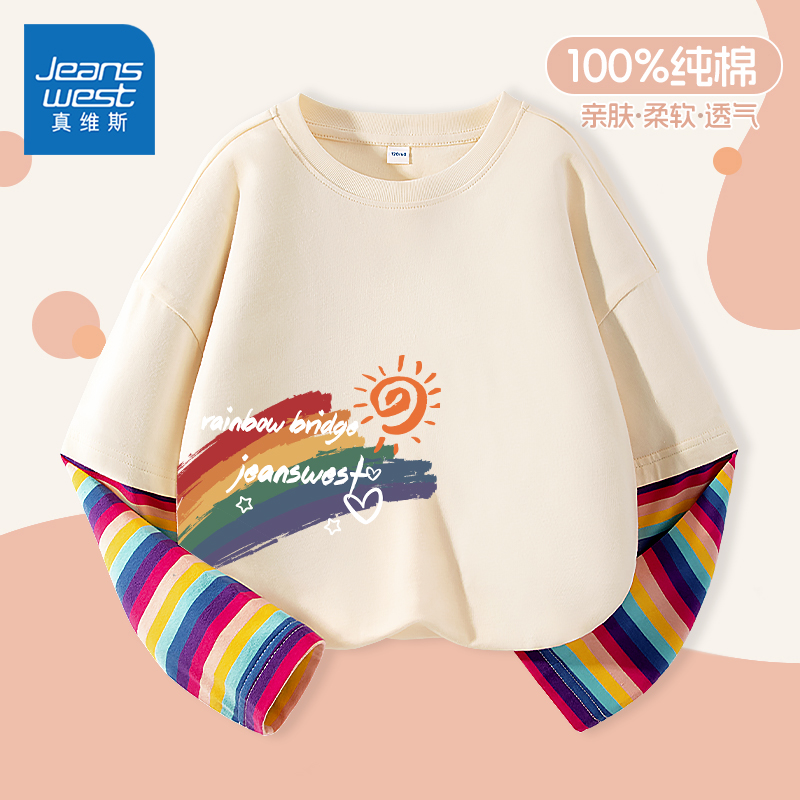 时尚 t恤女大童纯棉两件套儿童春秋款 潮流上衣 女童长袖 真维斯童装