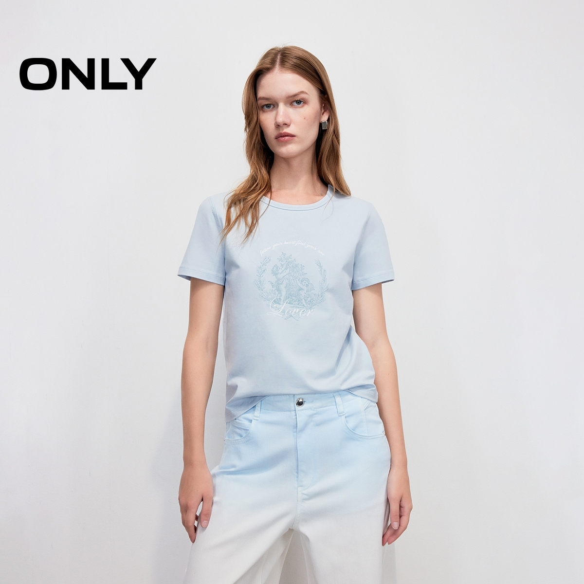 型经典 简约百搭字母刺绣直身版 圆领正肩T恤女 新款 ONLY2025夏季