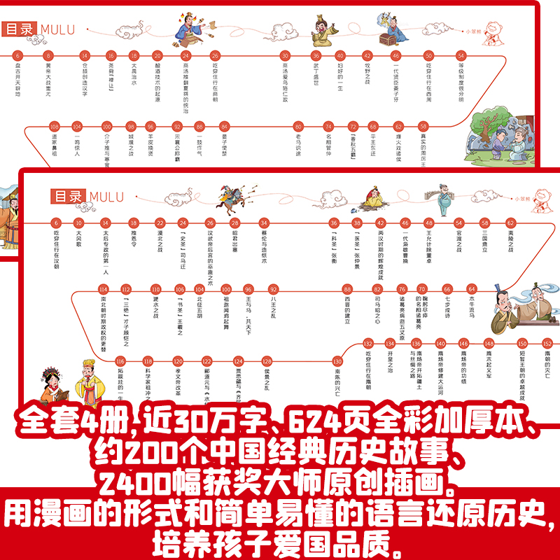 正版 经典 全套4册 一二年级阅读课外书必读小学推荐 国学故事书籍 中华上下五千年漫画儿童四格漫画连环彩绘本小学版