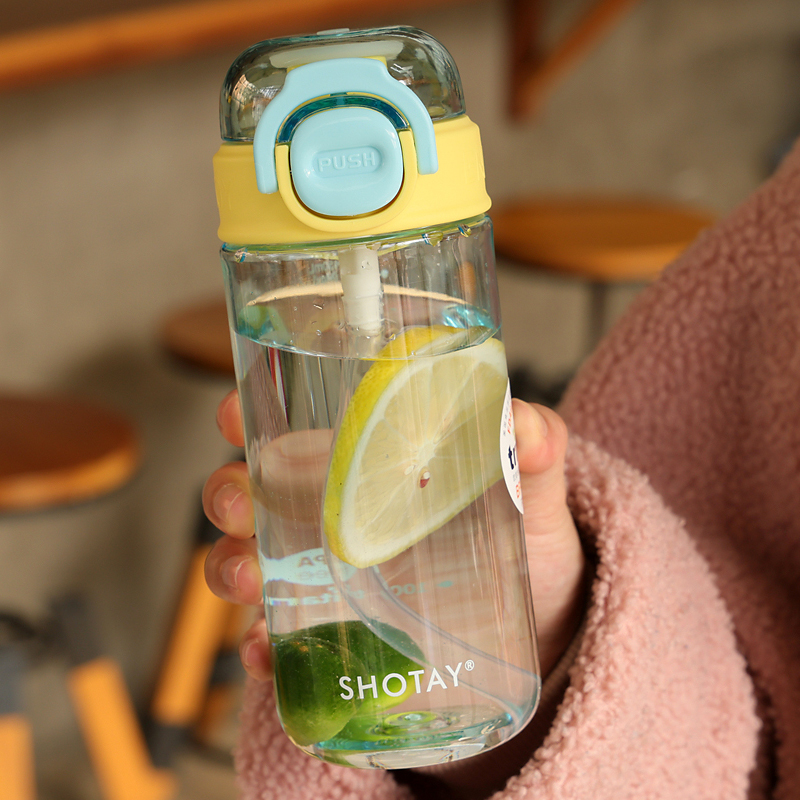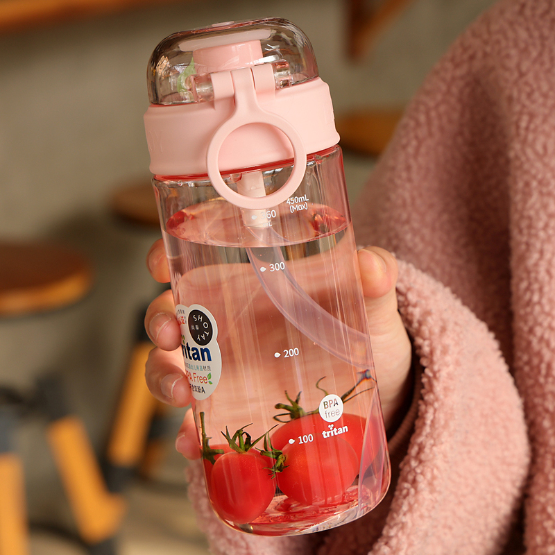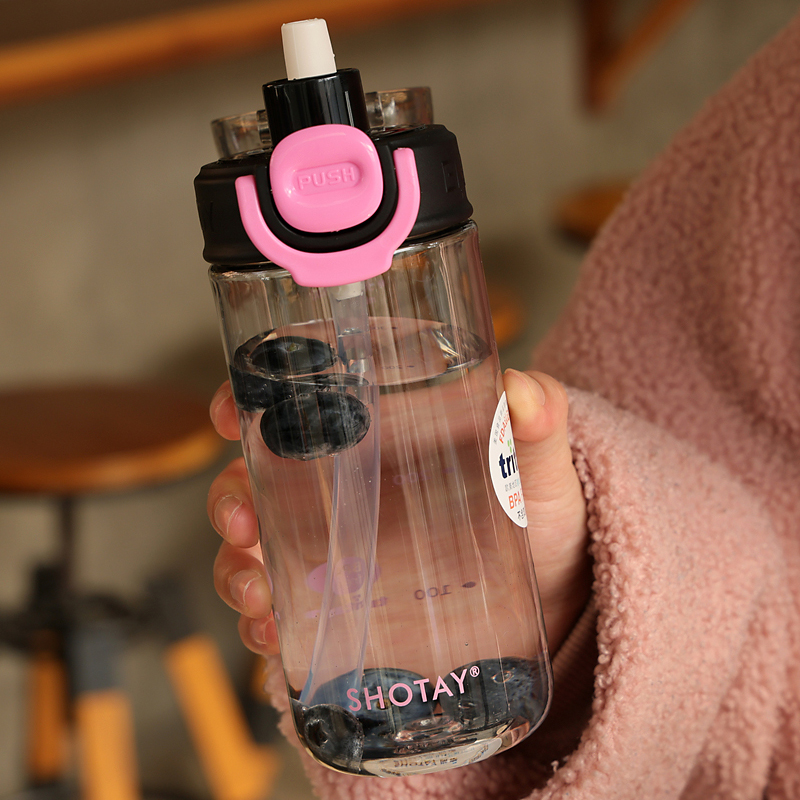 tritan水杯女生高颜值学生2025新款 便携弹盖塑料耐高温带吸管杯子