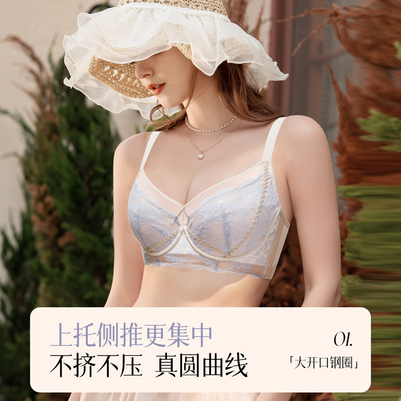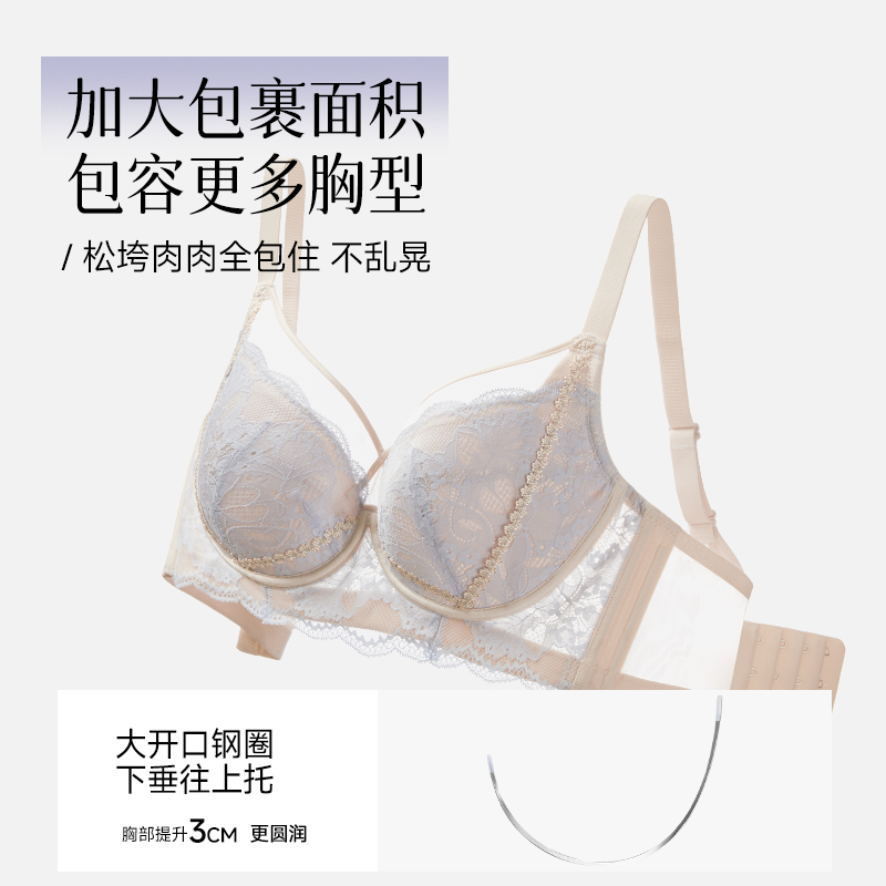 安娜蜜语调整型全罩杯女士内衣薄款 收副乳大胸显小显瘦防下垂文胸