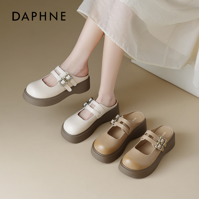 DYOWOZ 女增高3.3cm真皮厚底外穿 东园物作日系勃肯软木半包头拖鞋