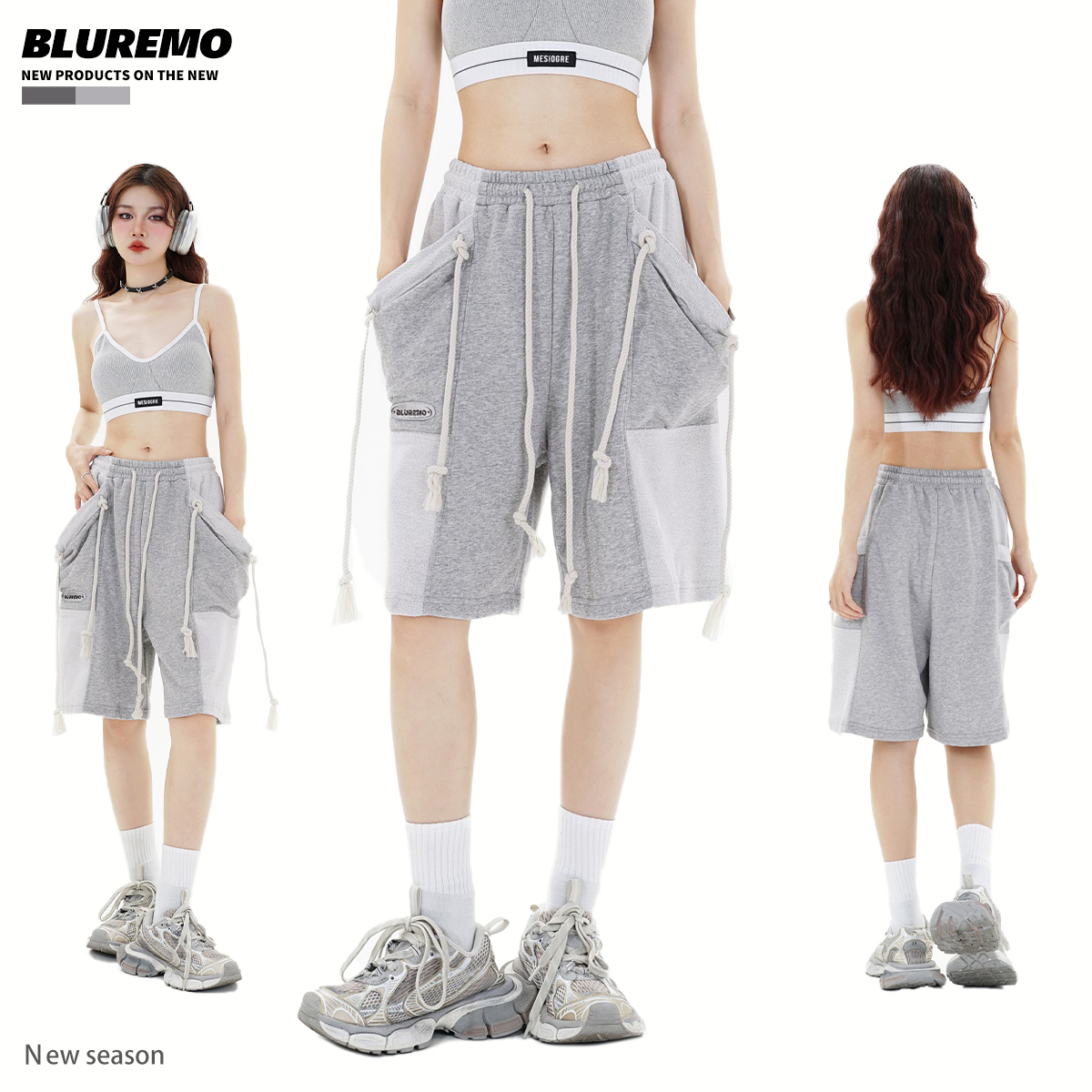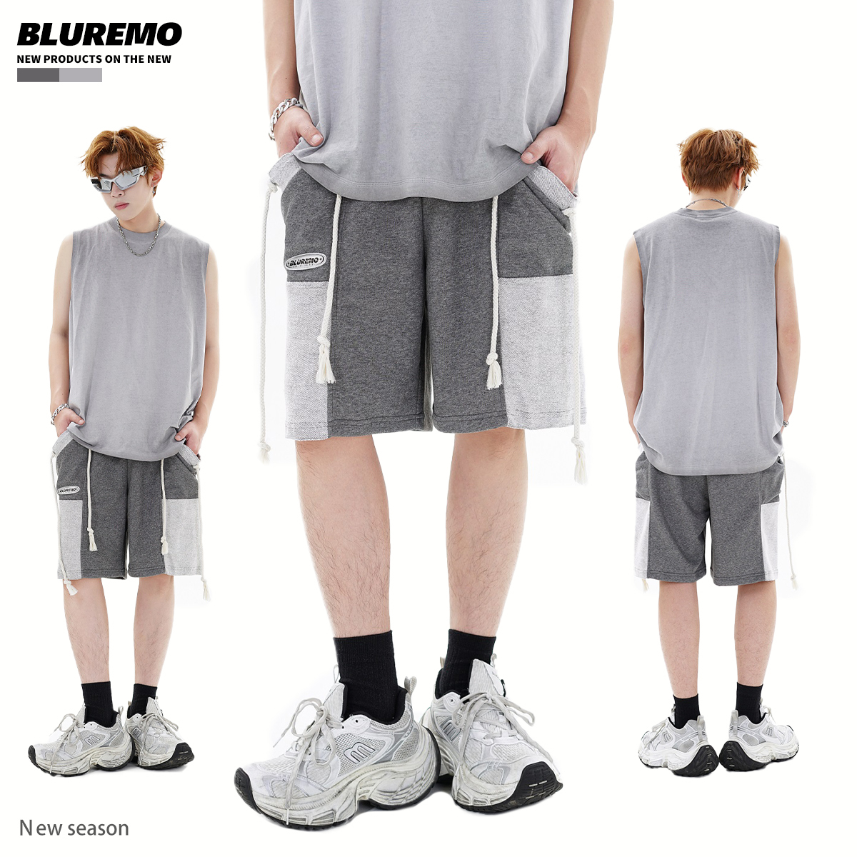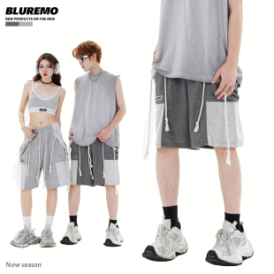 潮流拼接撞色抽绳百搭休闲五分裤 新款 模糊情绪2025夏季 BLUREMO