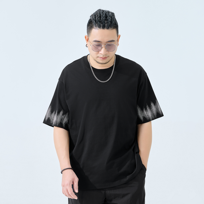 男装 加肥加大肥佬短袖 渐变印花T恤男士 新款 宽松潮胖夏季 半墨大码