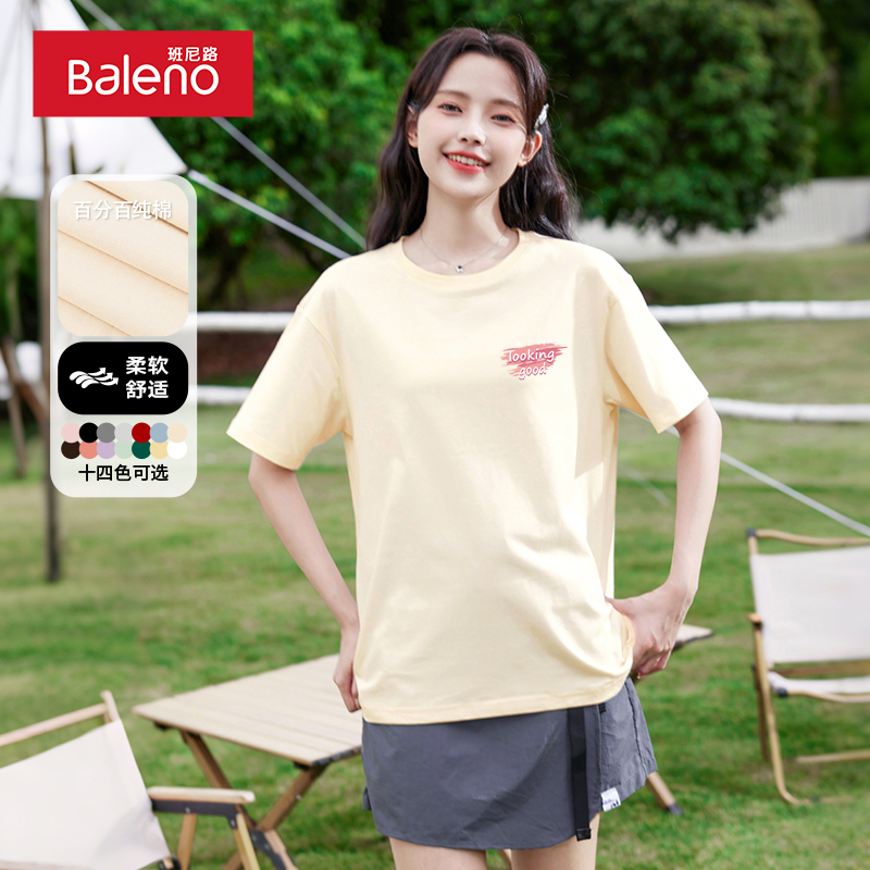 宽松休闲百搭上衣户外透气圆领内搭半袖 班尼路浅粉短袖 女t恤夏季