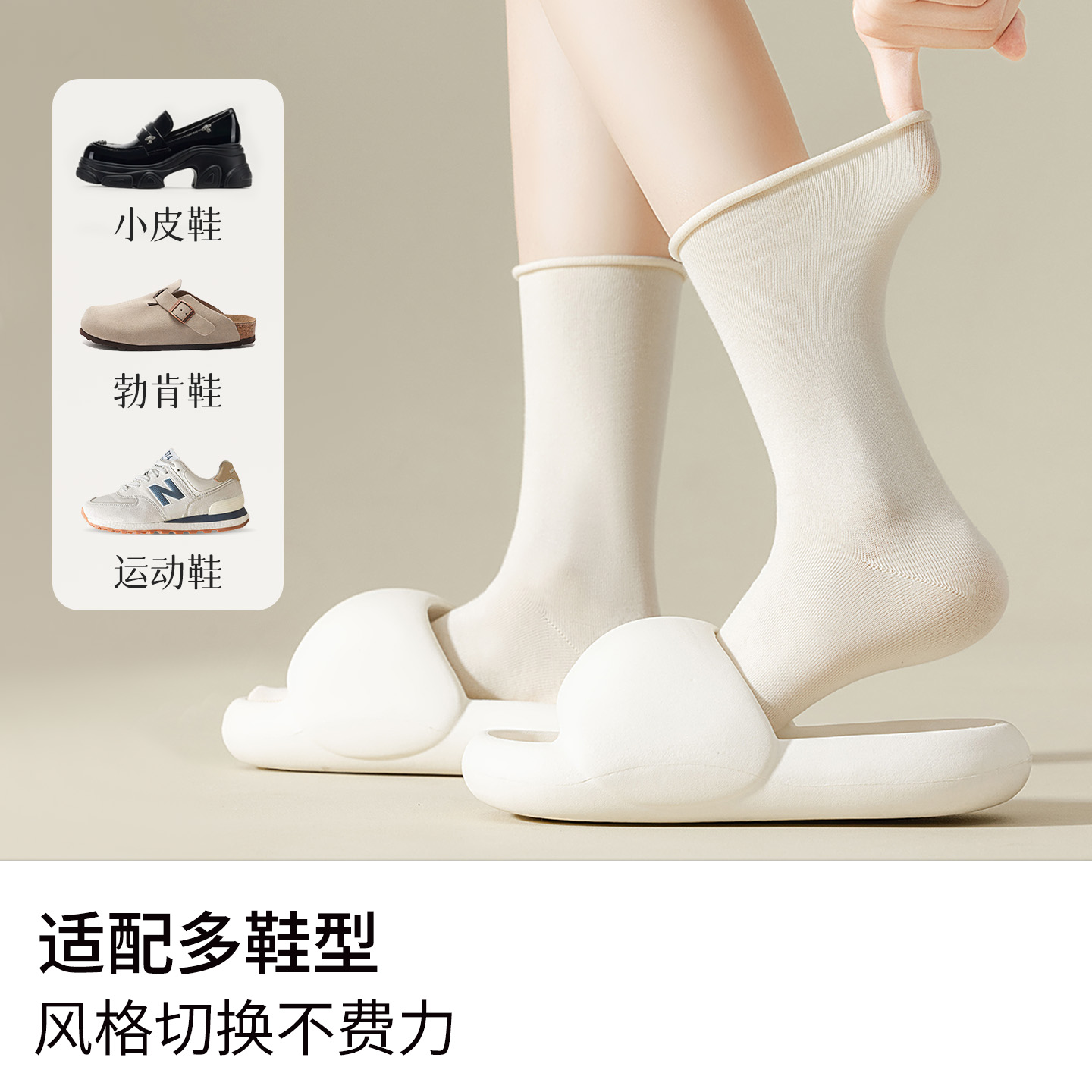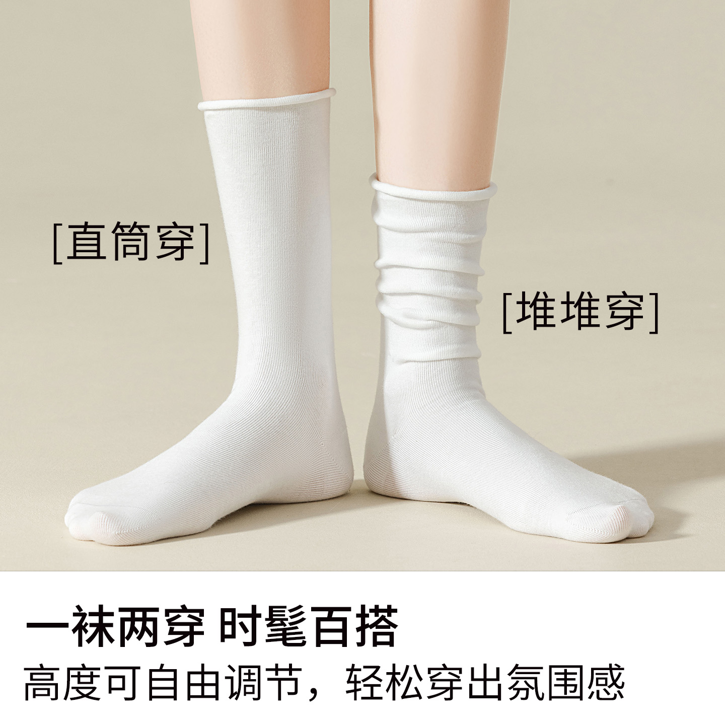 乐福鞋 黑色袜子女中筒纯棉秋冬季 堆堆长袜搭配小皮鞋 爆款 2025新款