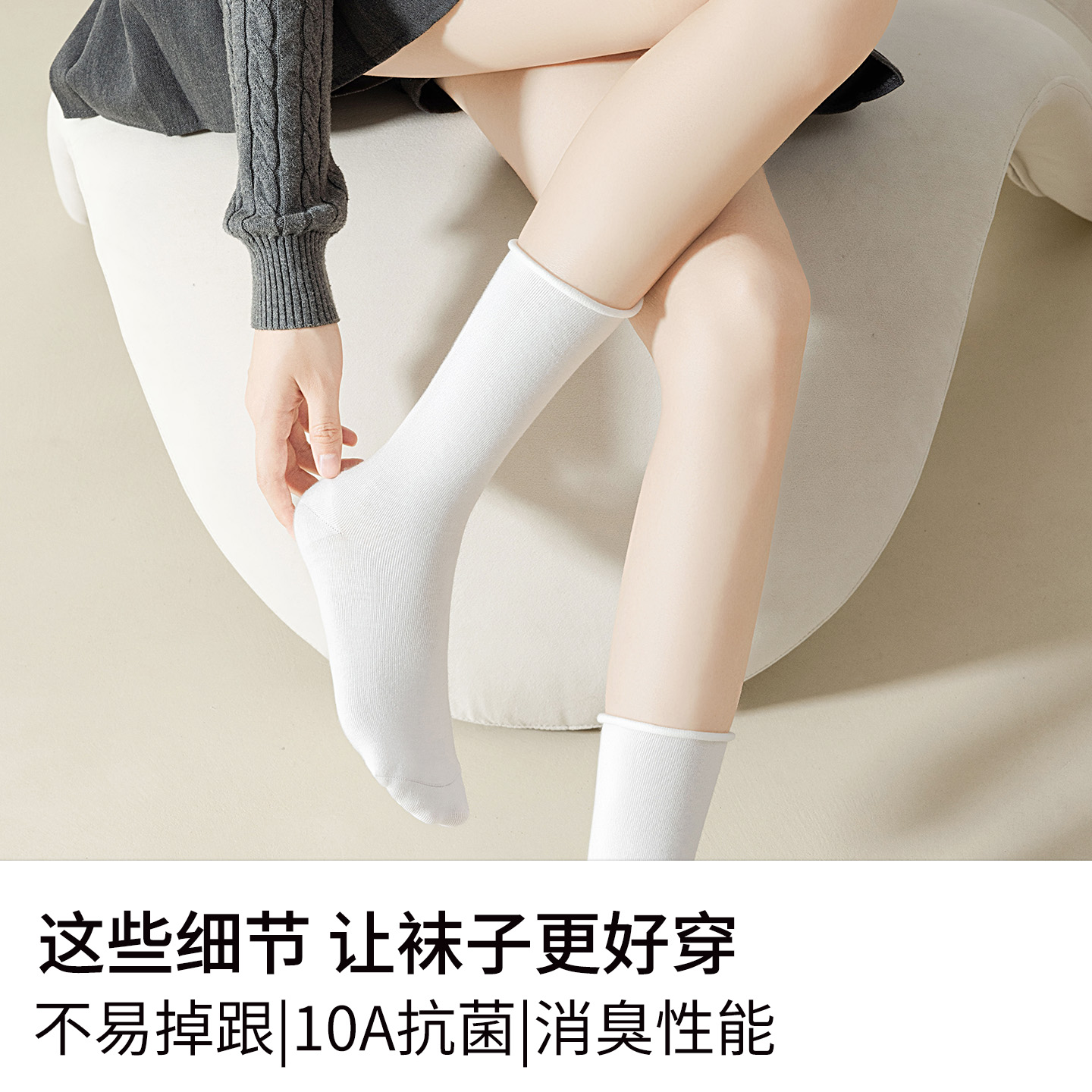 棉伙棉伴海藻袜舒适抗菌防臭男女商务运动纯色裸感中筒袜