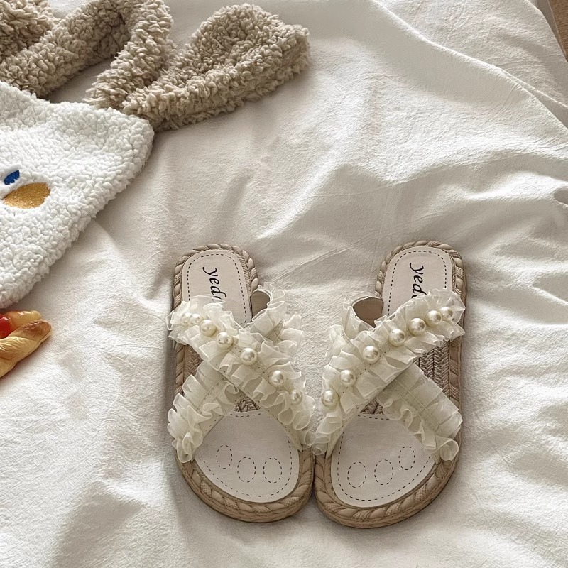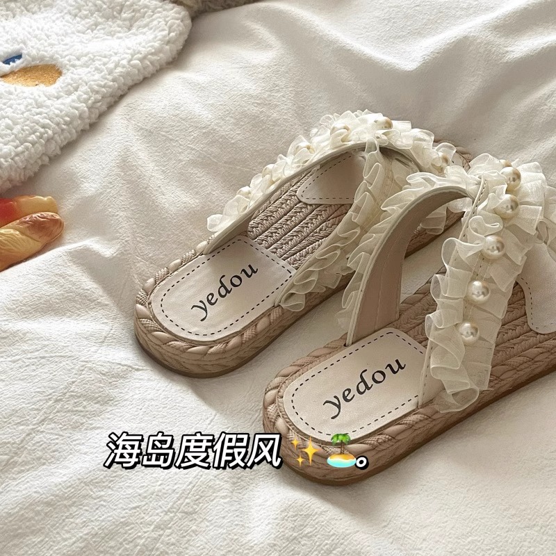 一字拖仙女风配裙子平底凉鞋 小个子2025年新款 时尚 夏季 女外穿拖鞋