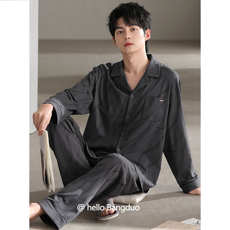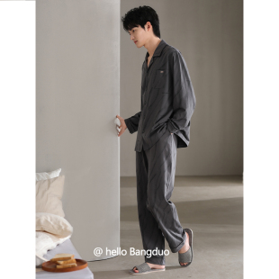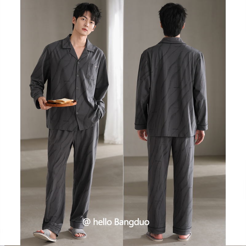 秋季 薄款 大码 睡衣男春秋款 高级感家居服套装 男士 休闲开衫 纯棉长袖
