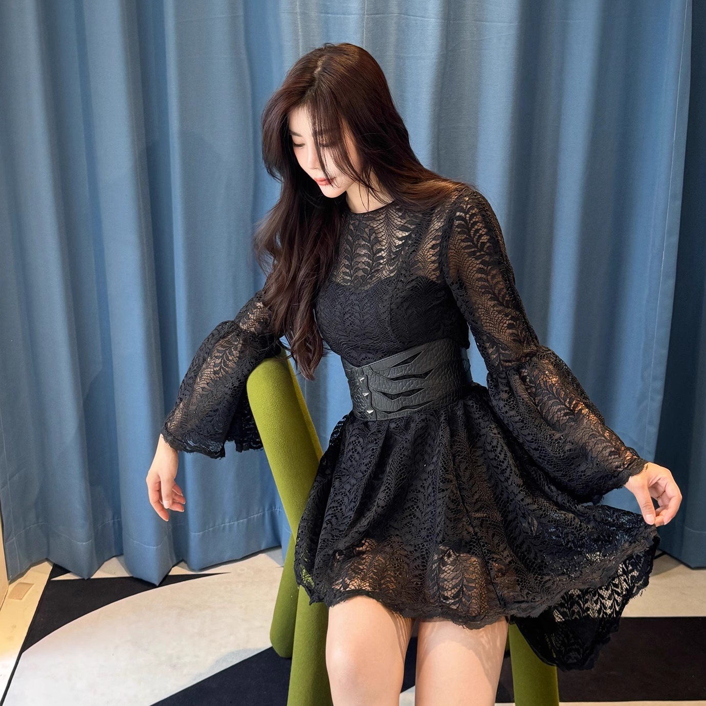 轻熟法式 Vero 口收腰修身 喇叭袖 风针织裙 Moda连衣裙2025秋冬新款