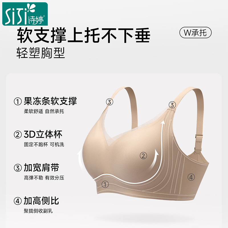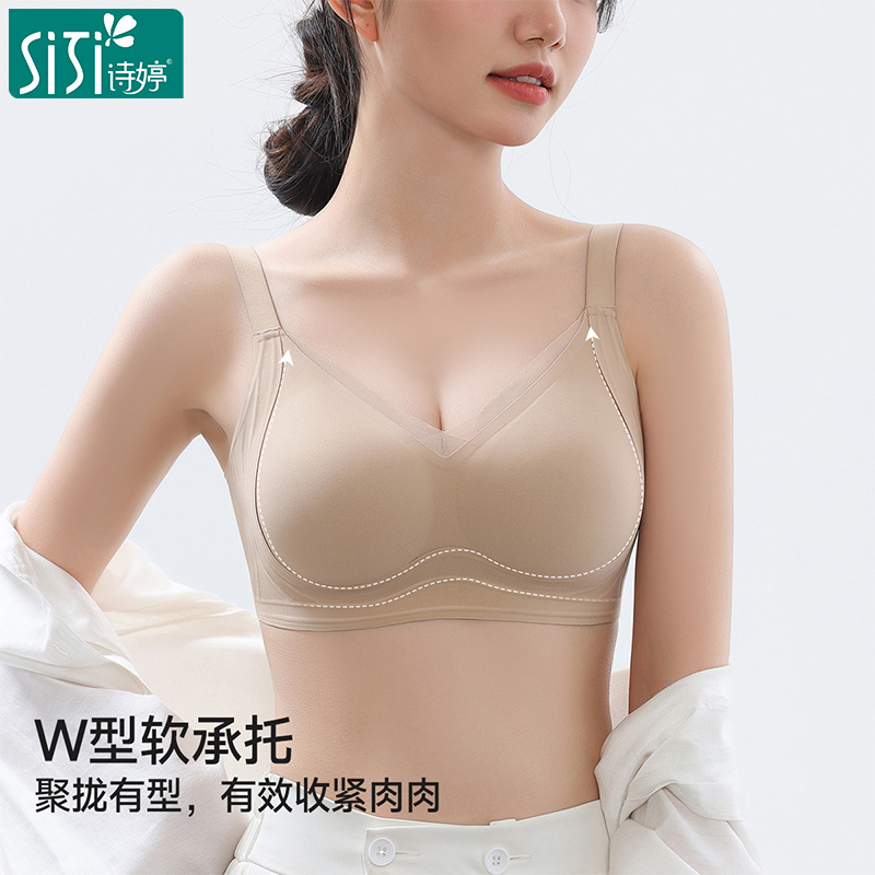 诗婷小胸聚拢内衣女无钢圈收副乳防下垂2025新款 无痕文胸罩 爆款