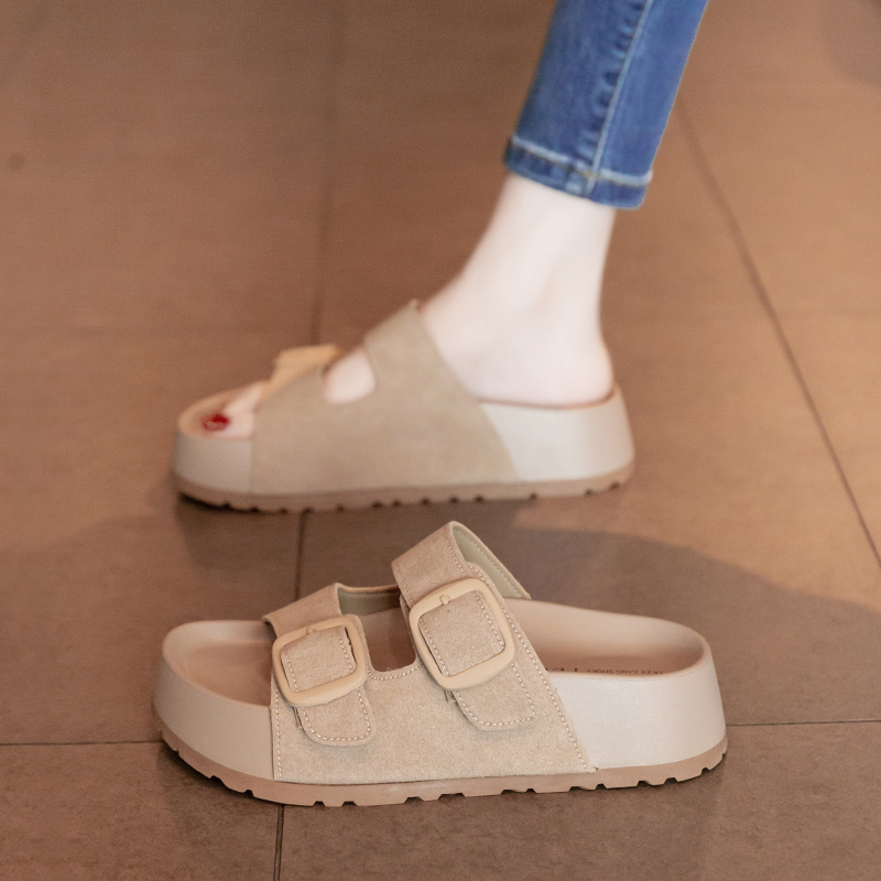 懒人休闲沙滩一字拖凉鞋 厚底增高勃肯鞋 外穿2025新款 女夏季 凉拖鞋
