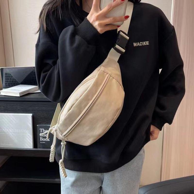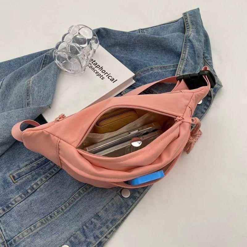 轻便尼龙帆布小包包女2024夏简约单肩胸包斜挎包红