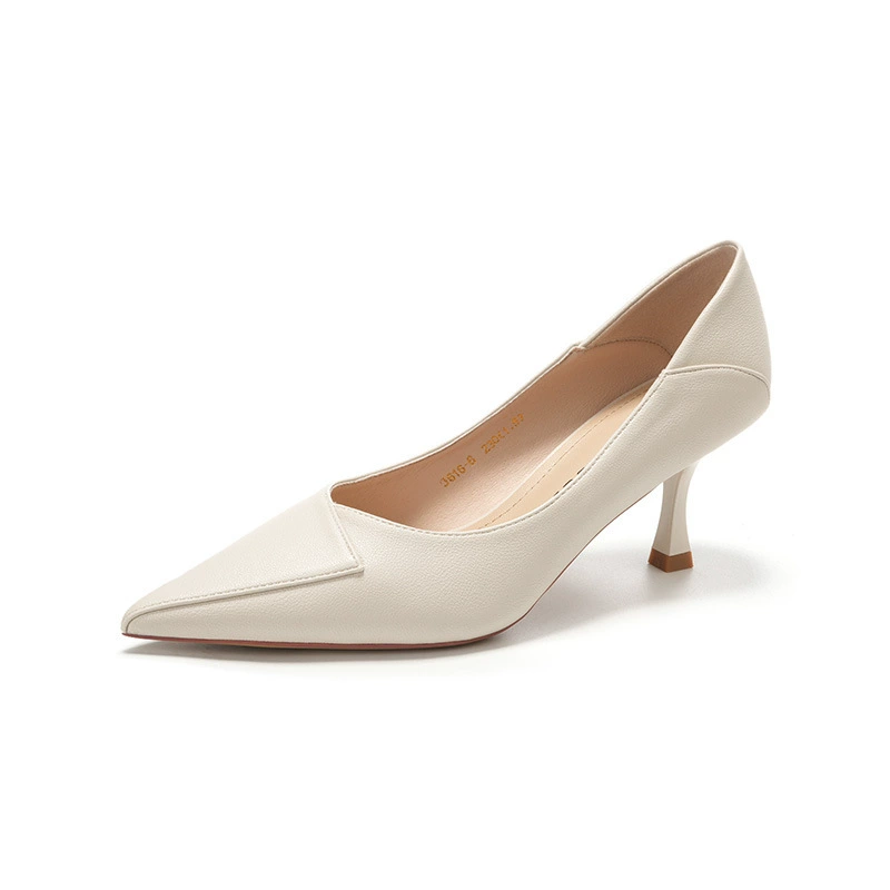 大女主 婚鞋 百思图25秋新款 尖头女浅口单鞋 裸色高跟鞋 双11预售