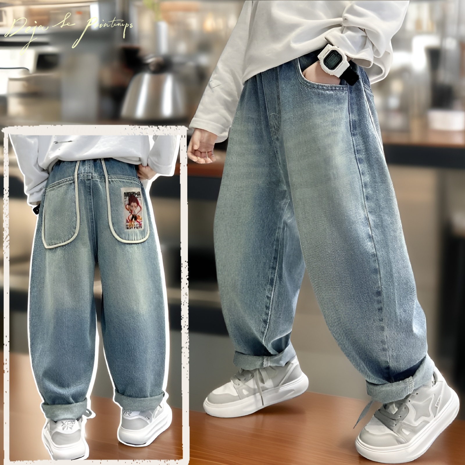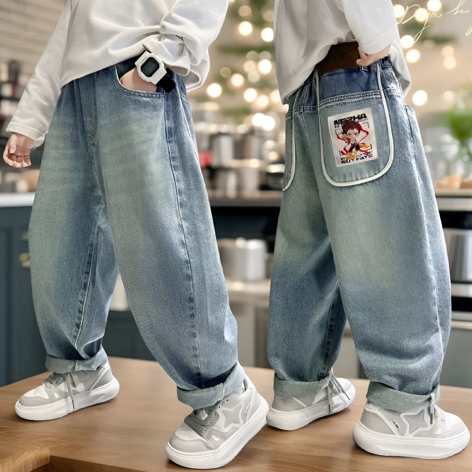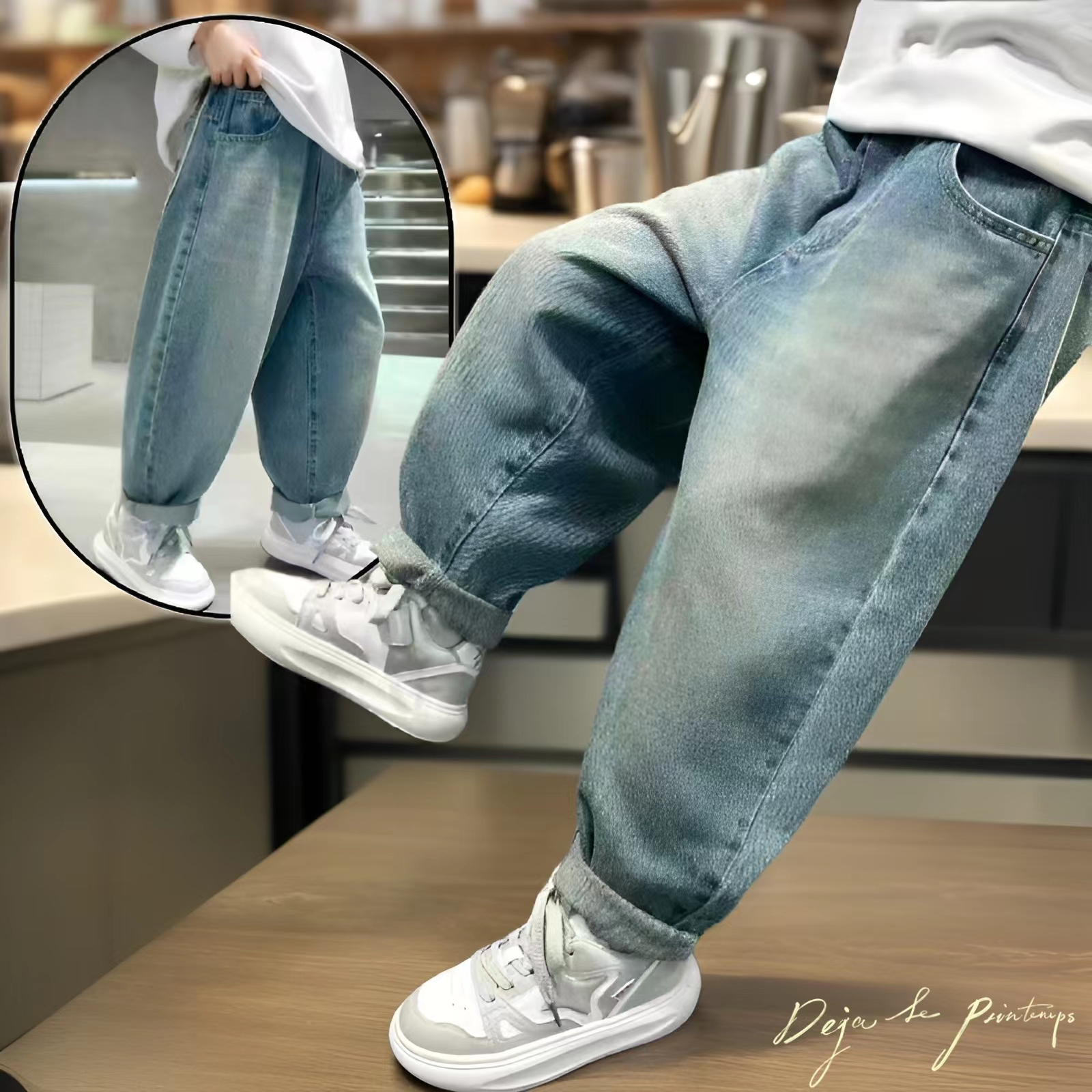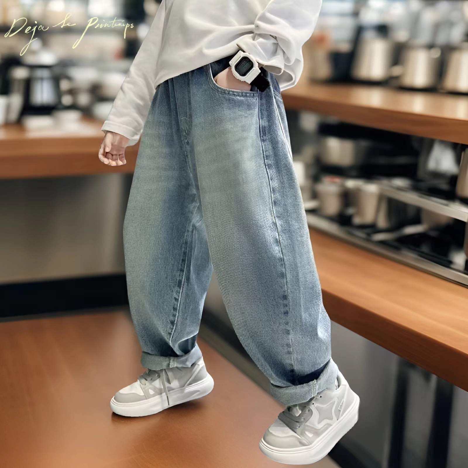 2025秋装 男孩秋季 新款 复古宽松长裤 运动直筒 儿童春秋款 男童牛仔裤
