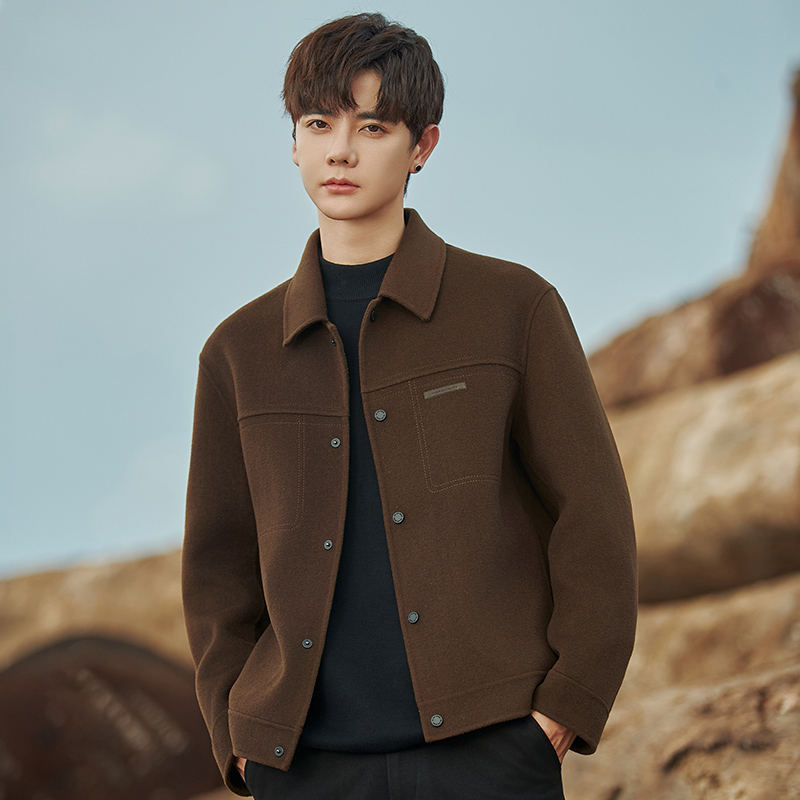 高端休闲夹克冬装 宽松大衣短款 上衣 春秋新款 双面羊毛呢子外套男士