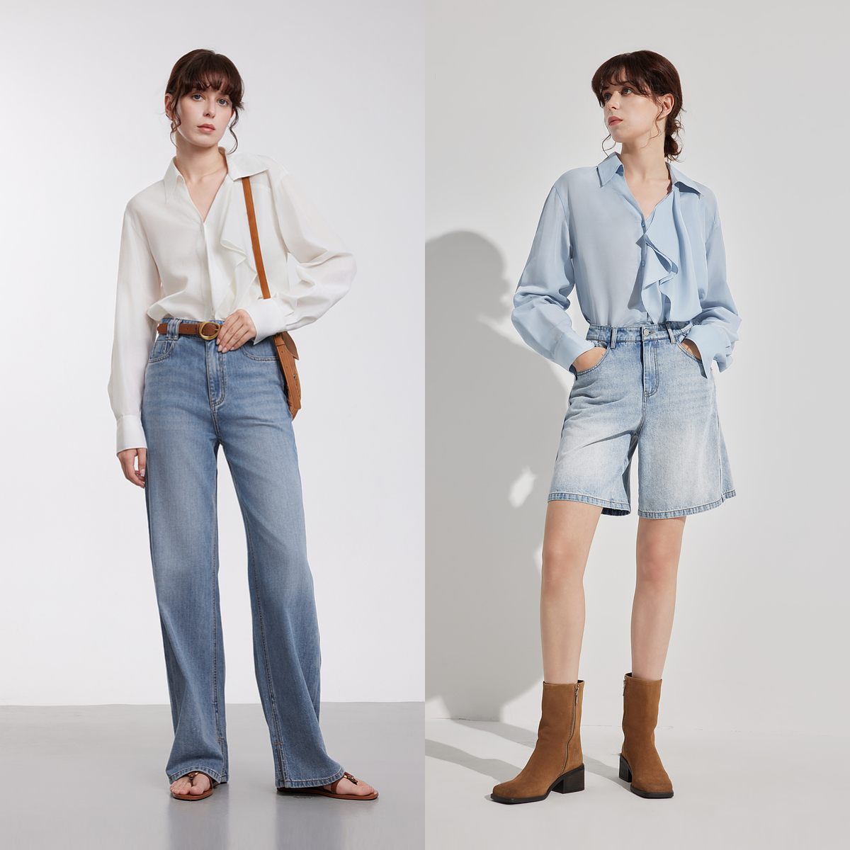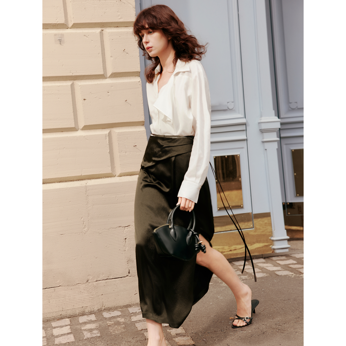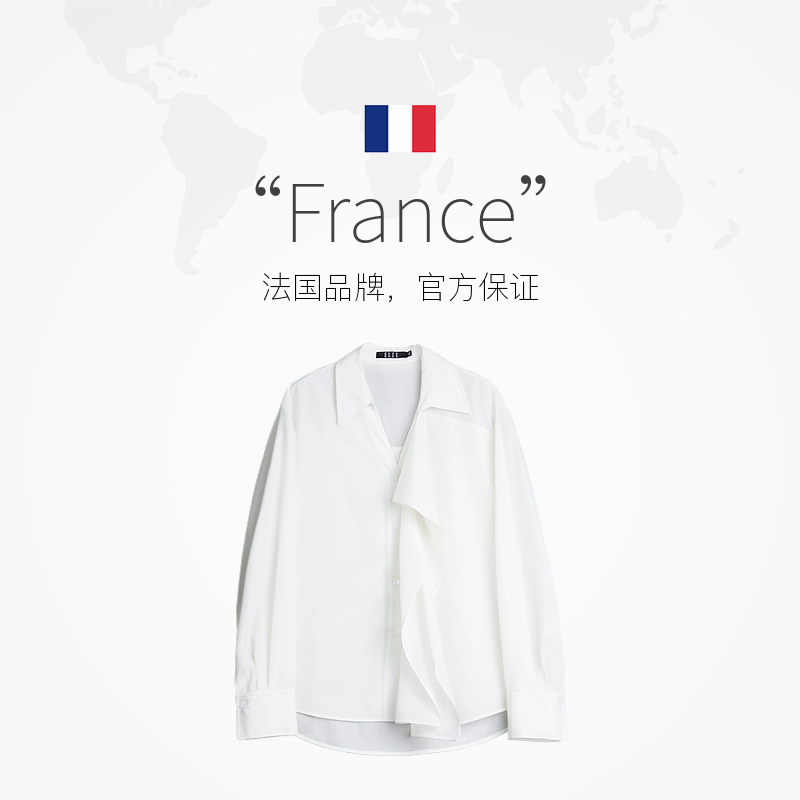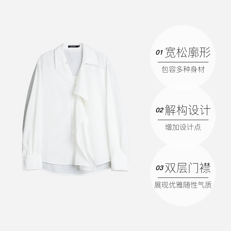 女2025夏款 衬衫 ELLE白色莱赛尔天丝轻薄长袖 小众领口衬衣 自营