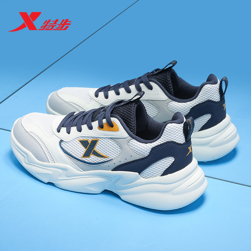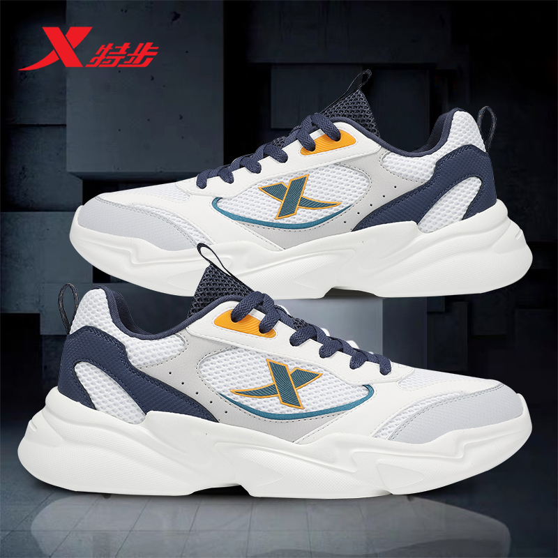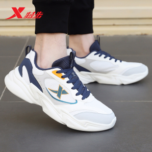 皮面防泼水爸爸减震网面休闲鞋 特步跑步鞋 黑色运动鞋 秋冬新款 男鞋