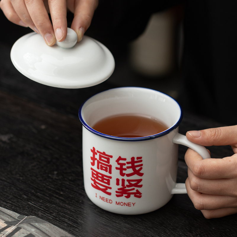 言仓线条小狗泡茶分离杯带滤托陶瓷水杯办公室茶杯生日礼物