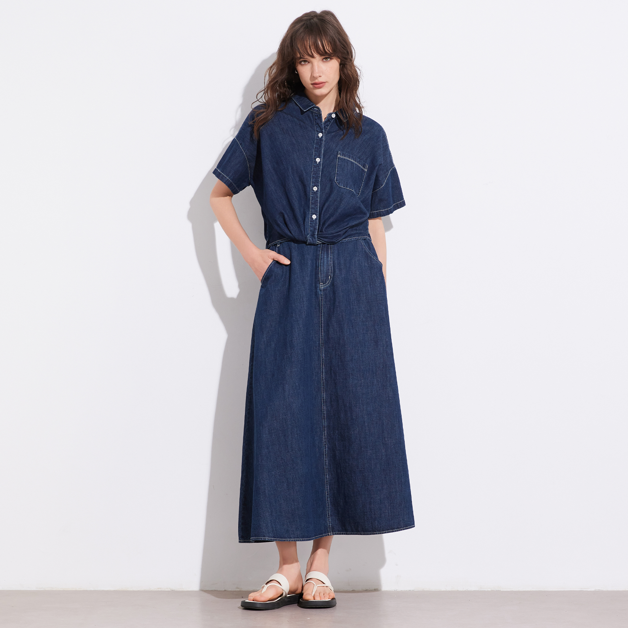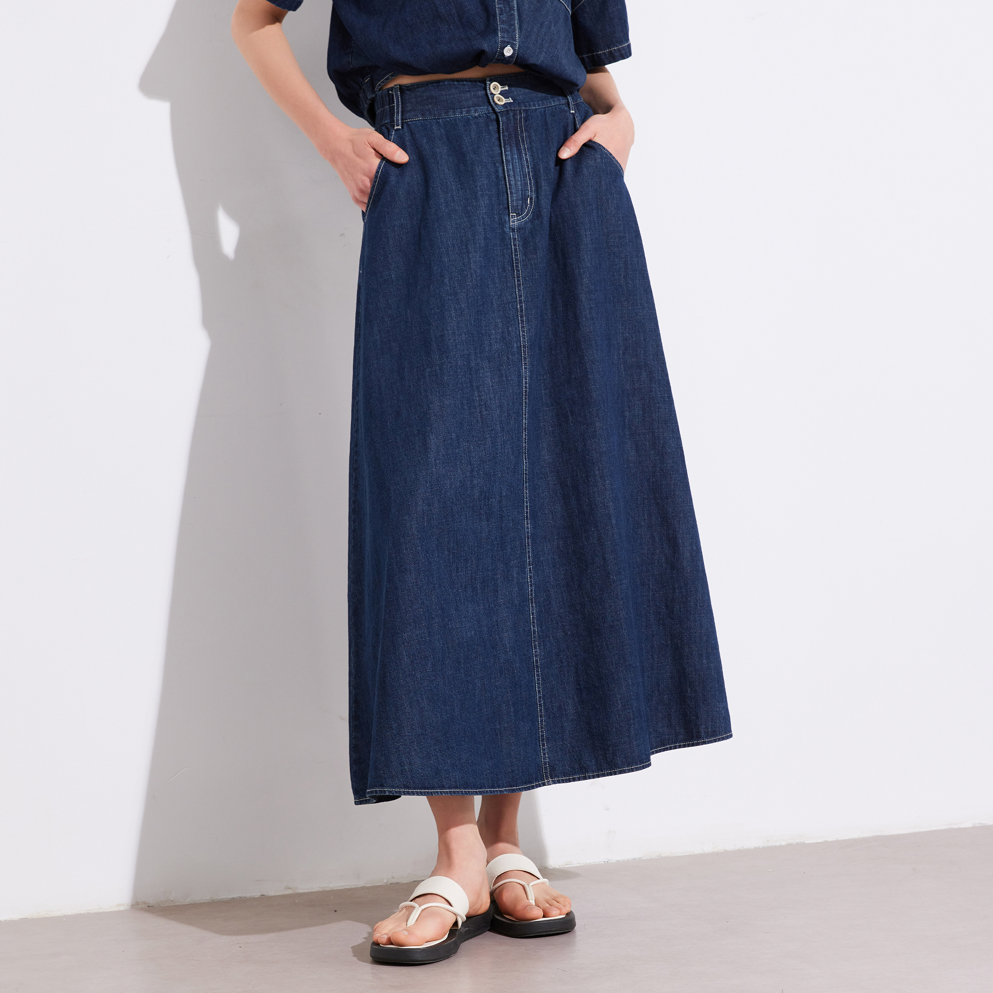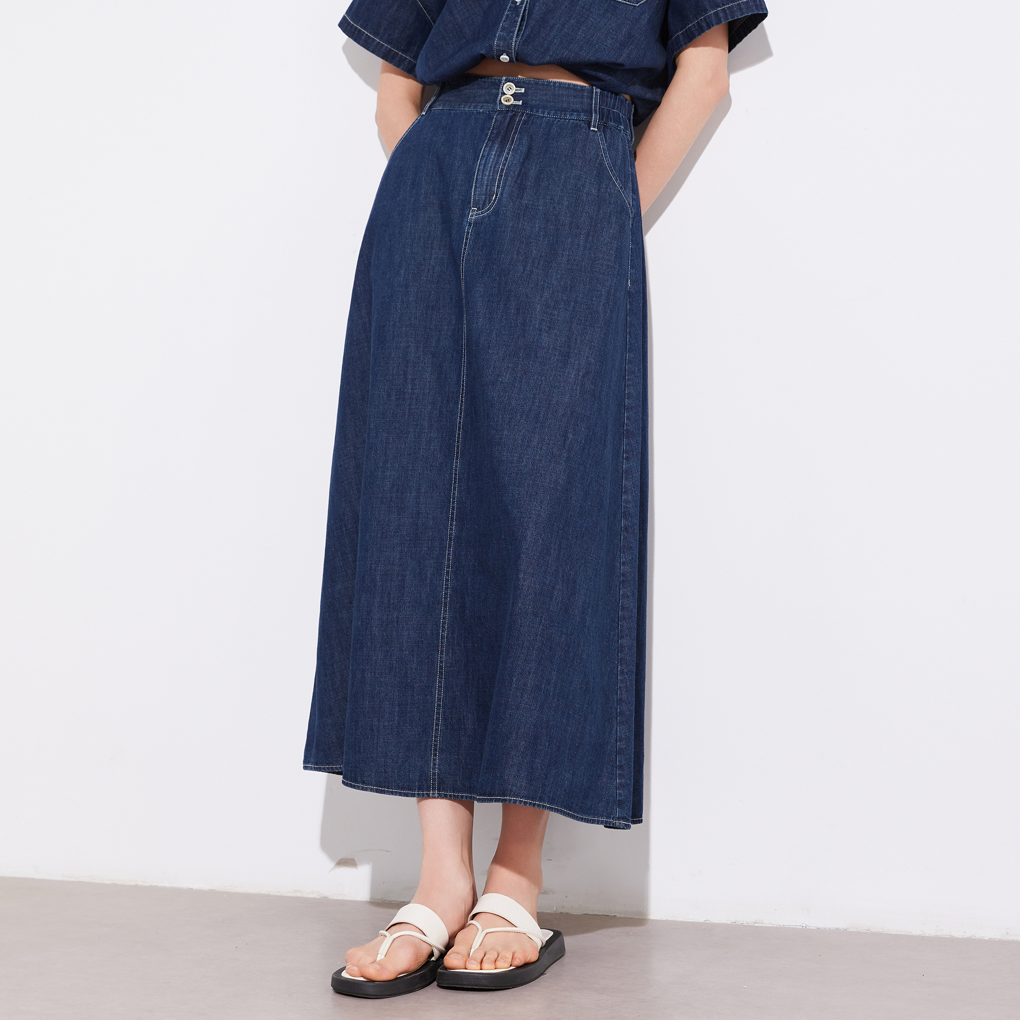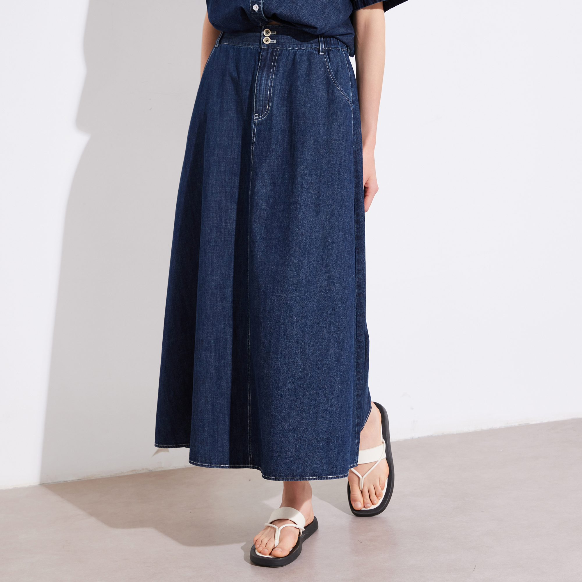A1GFE2179 开叉长裙女中长款 太平鸟牛仔蓝色半身裙2025夏季 款