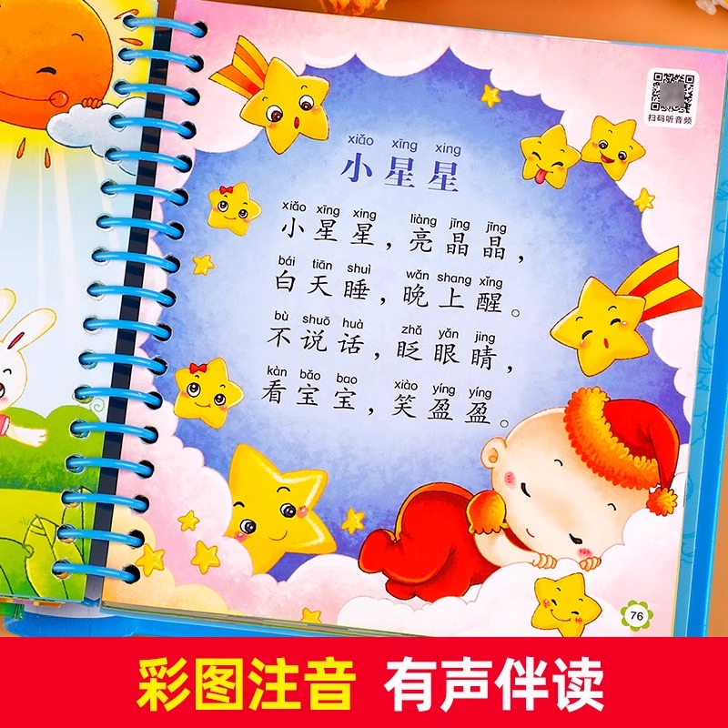 扫码 有声播放 三字儿歌 儿歌三百首 儿童启蒙益智 彩图注音版 宝宝歌谣书 幼儿园中国诗歌绘本篇儿歌大全300首书 童谣幼儿早教书籍